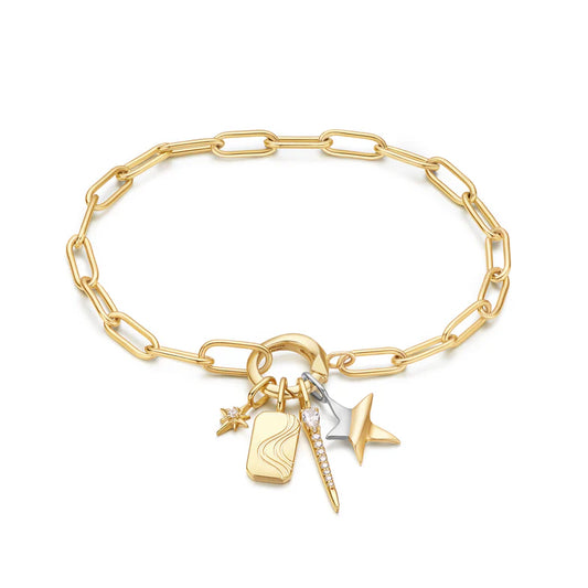 - Statement Charms: These larger, more elaborate charms make a bold statement and add a touch of glamour to her charm bracelet. Examples: The Ania Haie Gold Drop Link Connector Charm or the Silver Supernova Charm.