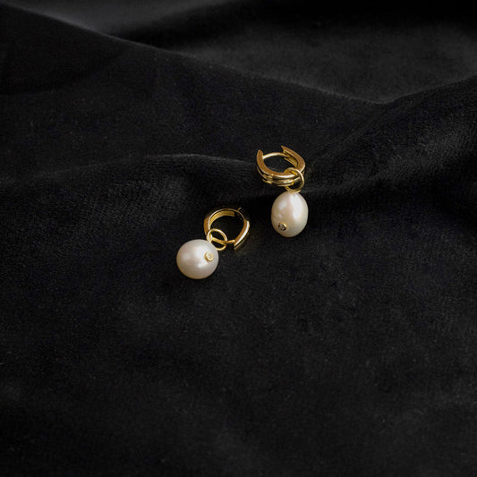 Gold Pearl Drop Sparkle Huggie Hoop Earrings by Ania Haie