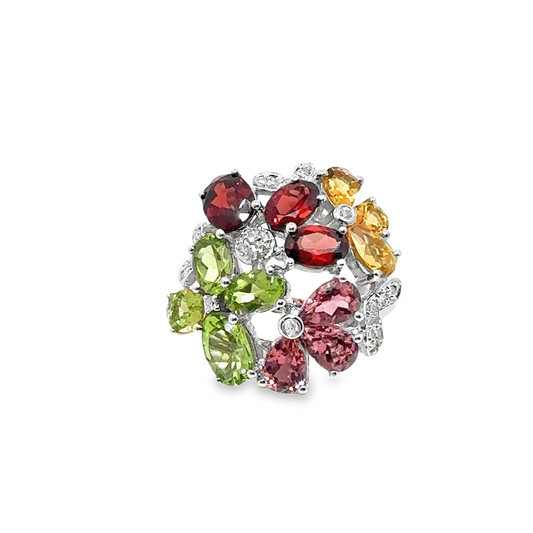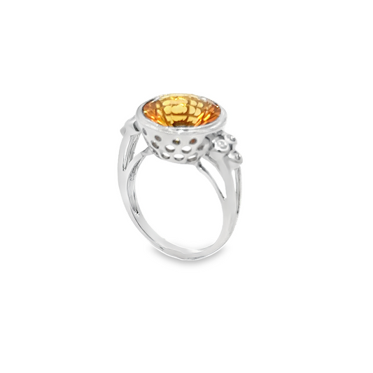 Anillo con halo de diamantes y piedras preciosas citrinas Sunshine